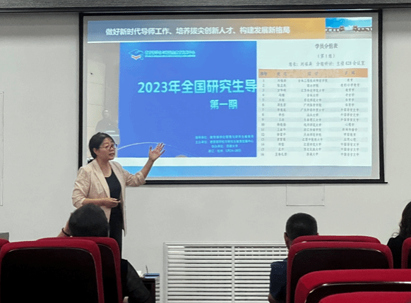 王桂萍教授对培训班的学习内容从建一流导师队伍、培养拔尖人才、构建新发展格局;科技向善、何为伦理;关于拔尖创新人才培养的思考;研究生课程思政教育的实践与思考;研究生学位论文质量监测;导学关系常见矛盾与有效处理;植根国家级多学科交叉科研基地的高层次创新人才培养生态的构建与实践等几个方面进行了分享。